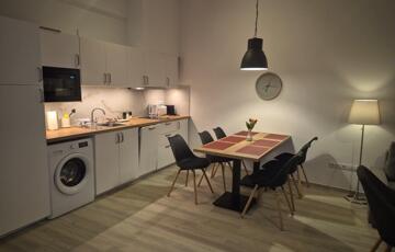 Kálvin tér és a körút néhány perc sétára, a Mikszáth tér hangulatos éttermei és kávézói a közelben.