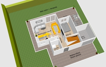- tágas terasz, szaletlivel és beépített, süllyesztett JAKUZZIVAL,
