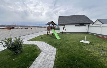 A 900 m2-es telek füvesített, parkosított, saját játszótérrel, térkövezett közlekedőkkel szolgálja a bérlő és vendégei kényelmét.