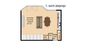 - Nappali: Modern amerikai konyhás nappali, ahol az egész család kényelmesen elfér.