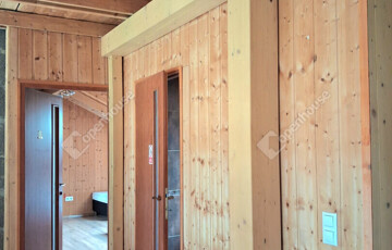 Az egész épületben a fa meleg hangulata dominál. Fölszinten és az emeleten látszó gerendák, a fürdőszobában minőségi burkolat,az egyedi készítésű fa beltéri ajtók, mind melegséget árasztanak.Minden szegletéből a nyugalom, a kényelem és a kifinomultság sugárzik.