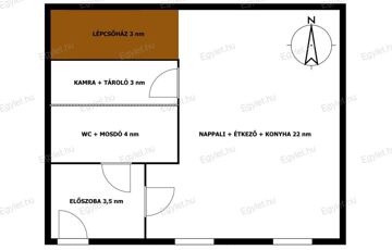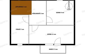 A házhoz tartozik egy közel 50 m2-es privát telek.