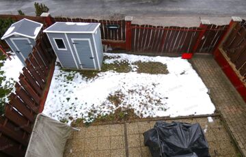 A kert első részében helyezkedik el a lakáshoz tartozó privát, zárható tároló.