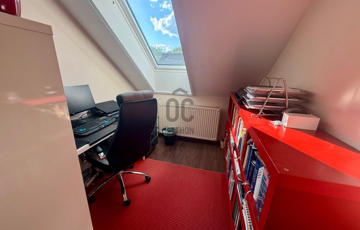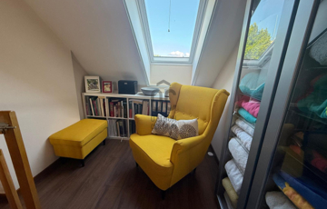 A tetőtérben egy hangulatos dolgozó és olvasósarok, valamint egy tágas szoba gardróbbal került kialakításra.