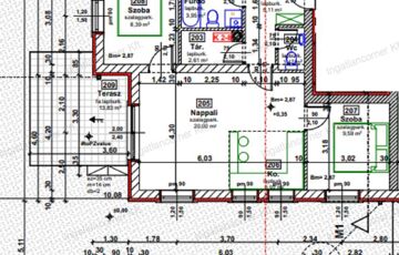 4, lakás nettó 58,45 m2 + 9,74 m2 terasz, nappali + 2 háló, 108 m2 telek, fan-coil klíma (a hálószobákban kiállás előkészítés), riasztó, kaputelefon, 2db parkoló
