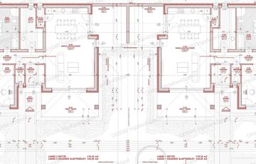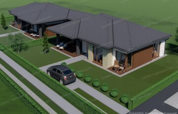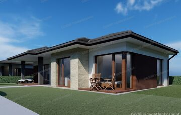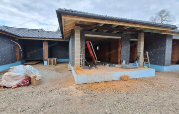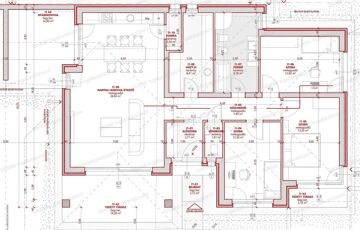 - Előszoba, nappali-konyha-étkező, kamra, 3 szoba, közlekedő, tágas fürdőszoba, vendégmosdó, háztartási helyiség + 14,28nm fedett terasz és 14nm nyári konyha