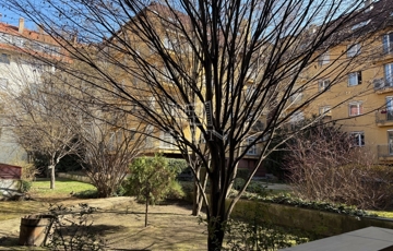 Az ingatlan a 9. kerület Rehabilitációs részére jellemző szépen gondozott, több épület által közrefogott belső kertre néz.