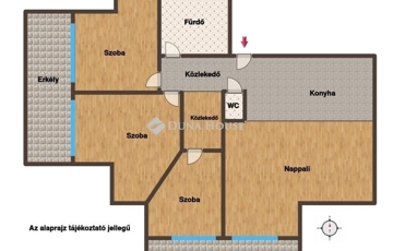 3 külön nyíló hálószoba jól bútorozható, praktikus elrendezés