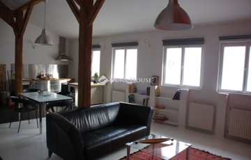 A lakás két szinten összesen 56 négyzetméter: míg az étkezővel és konyhával egybenyitott nappali tágas életteret biztosít, addig a felső szinten található beépített gardróbszekrényekkel és franciaággyal felszerelt hálóhelyiség teljesen privát marad. A belmagasság meghaladja az 5 métert is. A lakás felújítása során megőrizték az eredeti, csaknem 150 éves gerendákat, amik így teljesen egyedi hangulatot kölcsönöznek a tágas szobának. A nappali ablakai a ház belső udvarára néznek, valamint annak is köszönhetően, hogy az ingatlannak nincsenek felső szomszédai, a lakás a tér forgalma ellenére is csendes lakóhely.