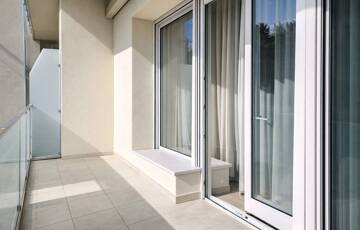 - esztétikus homlokzat, modern edzettüveg erkélykorlátok