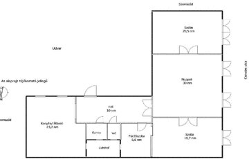 Jelenleg 3 szoba + nagy, étkezővel egybenyitott konyha elrendezésű, JÓ állapotú ingatlan.