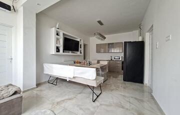 A hátsó lakás közepes állapotú, azonban már műanyag nyílászárókkal felszerelt. Szintén 2 és fél szobás, így akár külön generáció együttélésére, akár kiadásra is kiváló lehetőséget kínál.