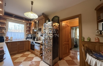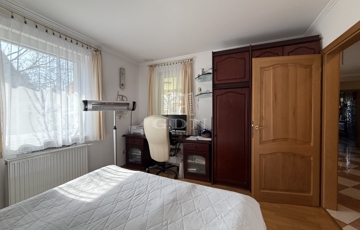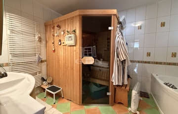 Földszint : Az előtér a ház központi terébe nyílik, a bejárati ajtótól jobbra egy- akár külön választható lakrészként- 1 hálószoba, előszoba, fürdő wc-vel helyezkedik el, közvetlen bejutással a minden funkcióval felszerelt konyhába. A bejárati ajtótól balra van a garázs (külön bejárattal), és az előszobából balra egy kamra. A bejárati ajtóval szemben az előszobából az étkezőbe jutunk , itt található még a földszinten egy tágas világos nappali, 1 gardrób, egy fürdő wc-vel, szaunával, háztartásihelyiség, vendég wc, és egy hálószoba.