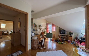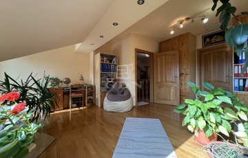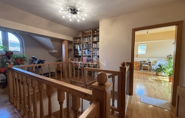 Tetőtér : A központi lépcsőn keresztül közelíthető meg. Itt helyezkednek el a további hálószobák, 2 hálószoba saját fürdőszobával, és gardróbbal rendelkezik.. A galéria másik feléről közelíthető meg a jelenleg tároló/ vendégszobaként funkcionáló + még 2 szoba.