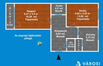 A lakás délkeleti tájolása, miatt rendkívül napfényes ingatlan.