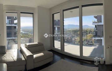 prémium felszereltségű, magasemeleti lakás a Metrodom Panorámában.A XIII. és IV. kerület határán, kiváló közlekedéssel és infrastruktúrával ellátott környezetben, a Metrodom Panoráma ikonikus lakóparkjában eladó egy 86 m²-es, amerikai konyhás + 3 hálószobás, két fürdőszobás, teljesen berendezett és gépesített, örökpanorámás lakás, a 13. emeleten.A tágas, 36 m²-es teraszról páratlan kilátás nyílik a Dunára és a Budai-hegyekre, ahol tájolásnak köszönhetően a napfelkeltétől a naplementéig élvezhető a város felett elterülő látvány. Felszereltség és műszaki tartalom:Okosotthon-rendszerWifi-s klímaberendezés minden helyiségbenElektromos alumínium redőnyök (applikációval és távirányítóval vezérelhetők)Szúnyoghálók minden ablakonBeépített konyhai gépek: Bosch, LiebherrA szülői hálóhoz saját zuhanyzós fürdőszoba tartozik, a másik fürdő kádas, mosó- és szárítógéppel felszerelt.Minőségi szaniterek: Wellis, Ravak, BlancoEgyedi mérőórák, házközponti fűtésTársasház és környezet:A Metrodom Panoráma négy 17 emeletes tornyából áll, modern és igényes közösségi terekkel, 24 órás portaszolgálattal és tiszta, rendezett lakókörnyezettel.A lakóparkban három játszótér található, különböző korosztályok számára, így családoknak is ideális.A földszinten éjjel-nappal nyitva tartó gyógyszertár működik, a közelben pedig számos bevásárlóhely, szolgáltatás és sportolási lehetőség elérhető.Közlekedés:Villamosok: 12, 14Metró: M3Busz: 196A Népsziget és a Római-part a közeli Északi összekötő hídon keresztül gyalogosan és kerékpárral is megközelíthető.ParkolásA lakáshoz tartozik egy 1. szinti teremgarázs-beálló a toronylift közvetlen közelében, amely 8.000.000 Ft-ért eladó, és a lakással együtt vásárolható meg.További információkAz ingatlan tehermentesBefektetés esetén pár hónapos visszabérlés megoldható.