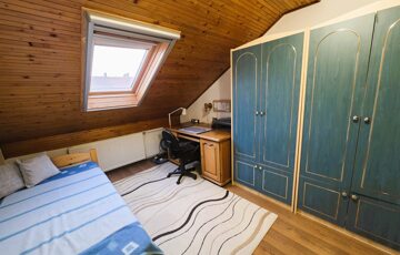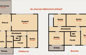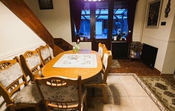 A ház 2021-ben és 2025-ben is felújításon esett át, így kiváló műszaki és esztétikai állapotú. A földszinten nappali, konyha-étkező, fürdő és egyéb kiszolgáló helyiségek, az emeleten 4 hálószoba és fürdő található. Teraszok és erkély is tartozik hozzá.