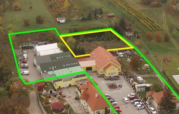 Az eladásra / bérbeadásra kínált ingatlan lakóövezetben helyezkedik el. A 7.486 m2-es földterület három helyrajzi szám alatt van nyilvántartva. Az egyiken ami 5533 m2, helyezkednek el az alábbiakban részletezett felépítmények. A másik 1328 m2-es, közművesített lakóház építésére alkalmas telek, vagy akár a felépítmények jövőbeni bővítésének adhat helyet. A harmadik pedig az üzem megközelítését szolgálja.