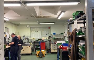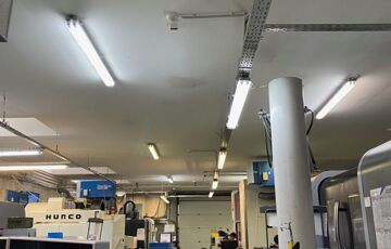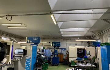 Az üzemcsarnok szintén vasbeton sávalapra épült, acél tartószerkezettel, 60 mm-es hőszigetelt szendvicspanellel, ami homlokzaton és a tetőn található.