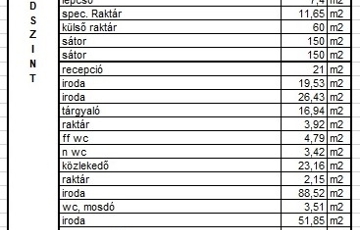 Az ~755 m2-es üzemcsarnokból, cirk 20 m-en találhatók a wc-k, mosdók, a fennmaradó ~735 m2, ~3,4 m belmagasságú rész termelésre, raktározásra alkalmas. További tárolási lehetőséget kínál a két darab 150 m2-es sátor és egy acél szerkezetű 60 m2-es tároló.