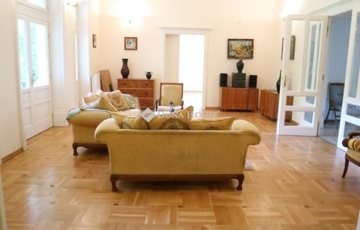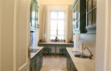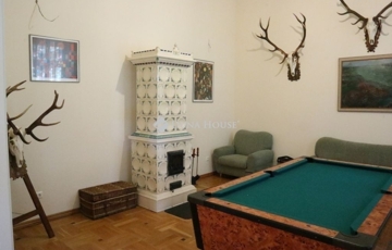 Főépület (306 m2): 3,65 m belmagasság, hatalmas ablakok, napfényes terek. Ékköve a biliárdszobában található, egyedi, kézzel festett Zsolnay majolika cserépkályha.