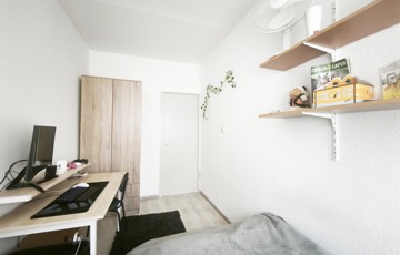 A rendezett, tiszta liftes lépcsőházból a több ponton záródó, biztonsági bejárati ajtón keresztül lehet bejutni. Belépve a lakásba az előtérből balra nyílik a gépesített, bútorozott ablakos tágas konyha ahova akár étkező asztalka is elfér, igény szerint. Jobbra nyílik a toalett, mellette egy polcokkal ellátott tároló ahol el tudjuk helyezni a nem minden nap használatos dolgokat. Szemben a tágas nappali szoba, keleti fekvésének köszönhetően napfényes, kellemes, komfortos érzetet nyújt. Innen jobbra a közlekedő egyik oldala beépített gardrób szekrénnyel van ellátva tovább növelve a tárolási felületeket. A közlekedőből nyílik a két fél szoba és szemben a kádas fürdőszoba, ahol a mosógép is helyet kapott.