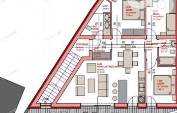 lakás: 92,45 m2, terasz: 16,27 m2, erkély: 4,56 m2