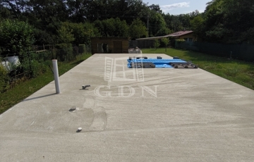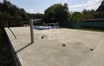 A telek beépítésére 2 szintes építmény tervezett. Ez alapján az épület (70 m2), terasz (20 m2) alapja, valamint egy 10 m2 területű pince már megépült.