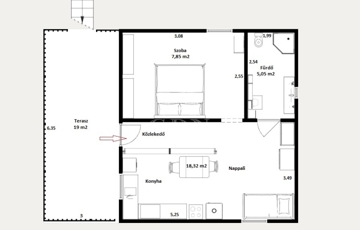 - 7,85 m² hálószoba,
