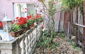 Egy régi garázsból kialakított helyiség is tartozik hozzá, és az udvaron belül autóbeállási lehetőség is adott.