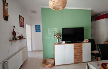 Isaszeg, Városközpontjának kertvárosi részén, eladó egy felújított nettó 73,24 m² fűtött, bruttó 78,24 m² alapterületű 2+2 szobás, GARÁZSOS, ALÁPINCÉCETT családiház földszinti lakása.
