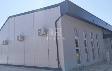 -2177 nm2-es telken helyezkedik el az acélvázas, 15cm-es szigetelt szendvicspanelből épült árucsarnok, melynek alapterülete 662m2