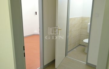 -a belső térben egy iroda, irattár, teakonyha, öltöző, 2 db mosdó-wc található