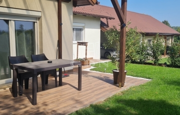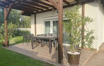 Tartozik hozzá 2 fedett autóbeálló és további 1 felszíni parkoló, kerti kisház, fedett grillterasz és gondosan parkosított kert.