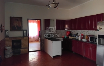 A kertes ház a 70-es években épült beton alappal és vegyes falazattal (vályog és tégla). A tetőszerkezete amerikai stílusú kombinált tető, zsindelyfedéssel ellátva. A fűtést helységenként elektromos fűtő testek biztosítják továbbá a nappaliban a falba épített hagyományos kandalló is hasznosítható. Az épületben villany (1x32A), víz, és csatorna be van kötve.