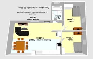 Az épület hasznos alapterülete 97,33nm melyben található: