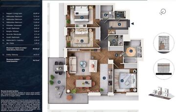 • 97,46 m² alapterület („nettó” 93,56 m2, „bruttó” 97,46 m2 alapterületű)