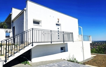 JELENTŐS ÁRESÉS!!! Pécsi havihegyi részén eladó egy 2020-ban épült, 92 nm-es lakótérrel rendelkező, 2 szintes, 3 szoba+ amerikai konyha-nappali elosztású, ÖRÖK PANORÁMÁS, újszerű állapotú, tégla ikerház, tágas teraszokkal, 2 állásos udvari parkolási lehetősséggel, kb 400 nm-es telken.