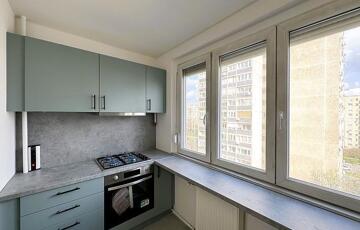 A világos, ablakos konyhába új konyhabútorok kerültek beépítésre.