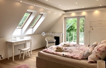 Eladó Budaligeten (Budapest 2A) gyönyörű fás környezetben nagy telken (1083 m2) álló két szintes összesen bruttó 370 m2 -es családi ház.Az ingatlan a Budapesti Gustave Eiffel Francia Általános Altalános Iskola és Gimnázium közvetlen közelében található, mely francia tantervet követ, tanulói elsősorban francia / magyar állampolgárságú diákok, de igen jelentős a más nemzetekhez tartozó diákok száma is. Szintén innen már közel az American International School of Budapest, mely helyileg Nagykovácsiban, 10 perc autózásra, található.A ház 2018-ban egy teljeskörű felújításon esett át, modern, kiválóan hőszigetelő nyílászárókkal és falakkal rendelkezik. Az ingatlan egy teljesen bekerített telken található, elektromos bejárati kapuval, mely privát szférát / intimitást és biztonságot nyújt. A meleget az egész házban modern padlófűtés biztosítja. A közvetlen kertkapcsolattal rendelkező földszinti lakás tágas nappali-étkezőből, jól felszerelt (Nolte) konyhából és beépített szekrényekből, 3 hálószobából, 2 fürdőszobából, háztartási helyiségből és egy nagy fedett teraszból áll.A felső emeleten egy fényárban úszó nagy nappali fogad - étkezővel, tetőablakokkal és dekoratív tetőgerendákkal ellátott magas helyiségekkel, egy jól felszerelt Nolte konyhával, 3 tágas hálószobával, 2 fürdőszobával, 2 nagy erkéllyel és egy fa laminált padlóval burkolt félemelettel rendelkezik , amelyhez már csak egy lépcső vagy létra feljáró szükséges. Minden szoba modern Daikin klímaberendezéssel van ellátva.A házhoz egy nagy, gyönyörűen parkosított kert tartozik öntözőrendszerrel, kerti pavilonnal és egy pincével, ahol két állású garázs található.A ház jelenleg két különálló lakóegységre van osztva, azonban egy kisebb átalakítással könnyedén összenyitható. Az ingatlan jelenlegi állapotában is sokféle hasznosításra alkalmas: ideális kétgenerációs otthonnak, egyik lakás hosszú vagy rövid távú kiadásával pedig rendszeres jövedelemforrás biztosítható, miközben a másikban kényelmesen élhet a tulajdonos. Az egységek összekapcsolásával pedig egy család számára tágas, világos és jól kihasználható élettér alakítható ki.Ne hagyja ki ezt a hihetetlen lehetőséget, és hívjon megtekintésért vagy további információkért.