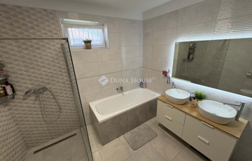 Lajosmizsén, új építésű házak szomszédságában kínálunk eladásra egy 2023-ban épült, modern és igényesen kialakított, A+ energetikai besorolású családi házat. Az ingatlan stabil betonalapra készült, Porotherm 30-as téglából, 15 cm-es szigeteléssel, fafödémmel és 35 cm-es födémszigeteléssel, így nemcsak esztétikus, hanem kifejezetten energiatakarékos is. A tetőt betoncserép fedi, a ház pedig napelem rendszerrel is felszerelt, ami tovább csökkenti a fenntartási költségeket.A 103,21 m²-es lakótér jól átgondolt elrendezésű: tágas előtér fogad, innen nyílik az amerikai konyhás nappali, amely a családi élet központja lehet. A konyhában egyedi tervezésű, teljeskörűen gépesített konyhabútor került beépítésre, amely a vételár részét képezi. Ezen kívül négy külön nyíló szoba biztosít kényelmes életteret akár nagyobb család számára is. A fürdőszoba WC-vel, külön háztartási helyiség és kamra is helyet kapott a praktikus mindennapok érdekében.Az otthon komfortját padlófűtés és gázcirkó biztosítja, a nappaliban egy 3,5 kW-os klíma gondoskodik a hűtésről. A nyílászárók háromrétegű műanyag ablakok, mindenhol redőnnyel és szúnyoghálóval felszerelve, a nappaliban pedig elektromos redőny növeli a kényelmet.A 643 m²-es, összközműves telek rendezett, öntözőrendszerrel ellátott kerttel rendelkezik, amely ideális pihenésre vagy családi programokra. A fedett terasz kellemes helyszíne lehet a reggeli kávézásnak vagy esti kikapcsolódásnak, míg a dupla garázs kényelmes parkolást biztosít. Az elektromos kapu tovább növeli a kényelmet és a biztonságot.Ez az ingatlan ideális választás mindazok számára, akik egy korszerű, alacsony fenntartású, azonnal költözhető otthont keresnek nyugodt, mégis fejlődő környezetben.CSOK Plusz és kedvezményes, akár 3%-os hitel is igénybe vehető.Ha felkeltettem érdeklődését, keressen bizalommal a hét bármely napján!