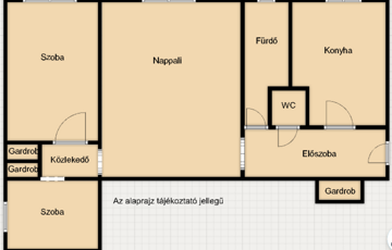 • 58 nm-es, praktikus elosztás: 1 nappali + 2 külön szoba