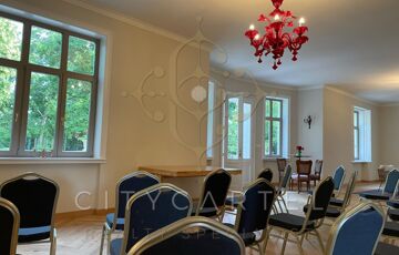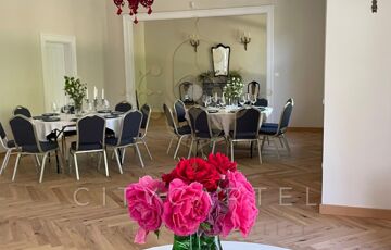 - Földszint: elegáns előtér és hall, 120 nm-es bálterem (amely alkalmas céges rendezvények, kisebb konferenciák, családi események és esküvői vacsorák megtartására 40-50 főig), egy hálószoba káddal, két fürdőszoba, konyha, kiszolgáló területek