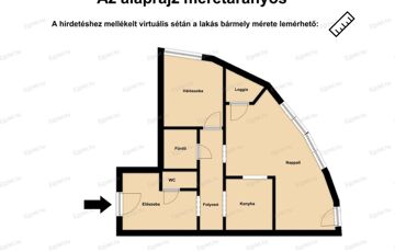 •Egyedi forma: A lakás alaprajza egy „tortaszeletre” emlékeztet (negyed körcikk), ami rendkívül izgalmas belső tereket eredményez.