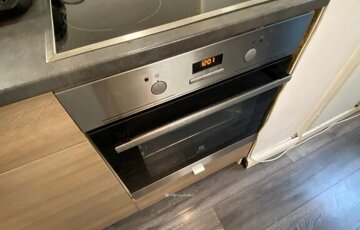 A beépített konyha GÉPESÍTETT, és egy KAMRA szekrénnyel felszerelt.