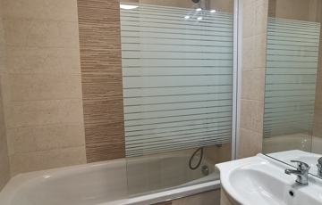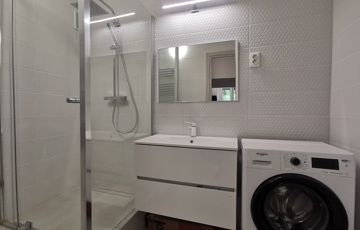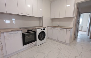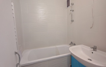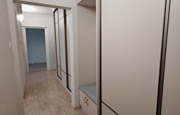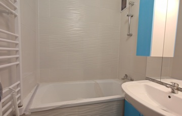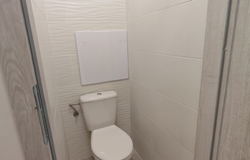 (A képek egy ugyanilyen minőségben, ugyanazokkal az anyagok felhasználásával felújított, más méretű, elrendezésű lakások képei (variációs lehetőségei), jelenleg még a burkolatok, színek, és minden egyéb, alaprajzokon felvázolt lehetőségek szerint módosítható megegyezés alapján, illetve zuhanyzó vagy kád is választható a fürdőszobába igény szerint.)