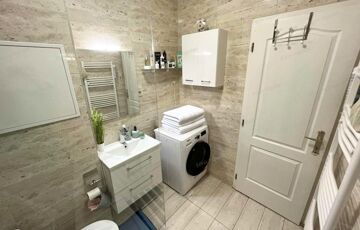 A fürdőszoba néhány évvel ezelőtt teljes felújításon esett át, így modern és jó állapotú.