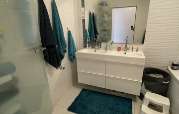 Előszoba, közlekedő, fürdőszoba (félsarokkád), konyha és a nappali járólapozva, a két szoba laminált lapozva. A felújítás során a teljes gépészet (villamos hálózat 32A-re bővítve, vízvezeték), összes nyílászáró, burkolatok, beltéri ajtók, bejárati ajtó cserélve lettek! A konyha, mely az IKEA-ból lett összeállítva a nagy szobában lett kialakítva, mely teljesen felszerelt (elektromos sütő, főzőlap, szagelszívó, hűtő szekrények, mikrohullámú sütő beépítve). A régi konyha helyére egy kis szoba került kialakításra, melyben egy tolóajtós gardrób is található. A fürdőszoba szintén át lett építve, ennek köszönhetően tágasabb, kényelmesebb lett, egy fél sarokkád került beépítésre. Az előszobából kialakításra került egy tároló, mely gardrób helyiségként és mosókonyhaként funkcionál.