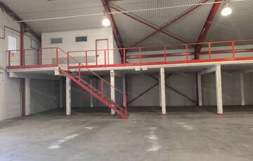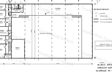 galériás kialakítással raktár. A vertikális közlekedést lépcsők biztosítják.