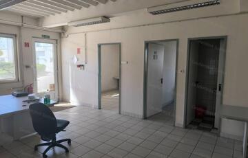 épült a raktár elé a <strong>kétszintes irodai rész</strong></p><p>- funkció: a földszinten kiszolgáló helyiségek és raktár, az emeleten irodák és
